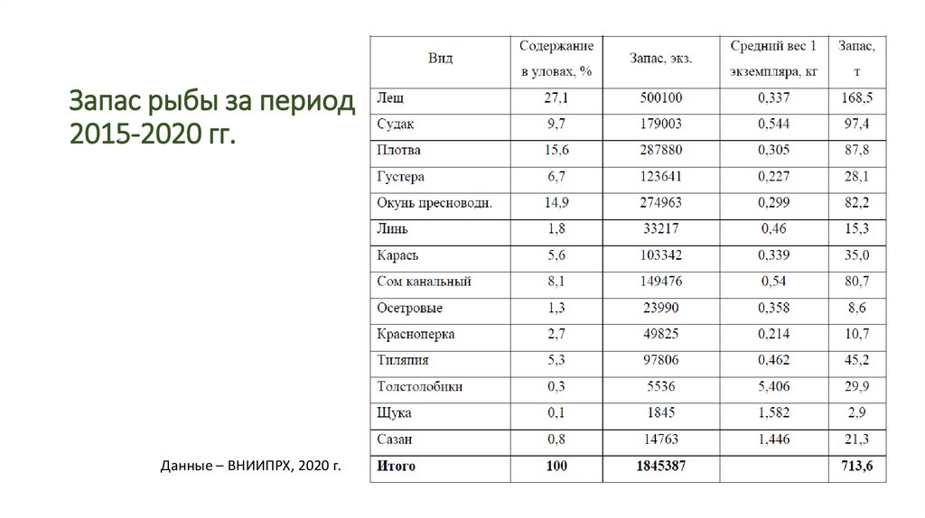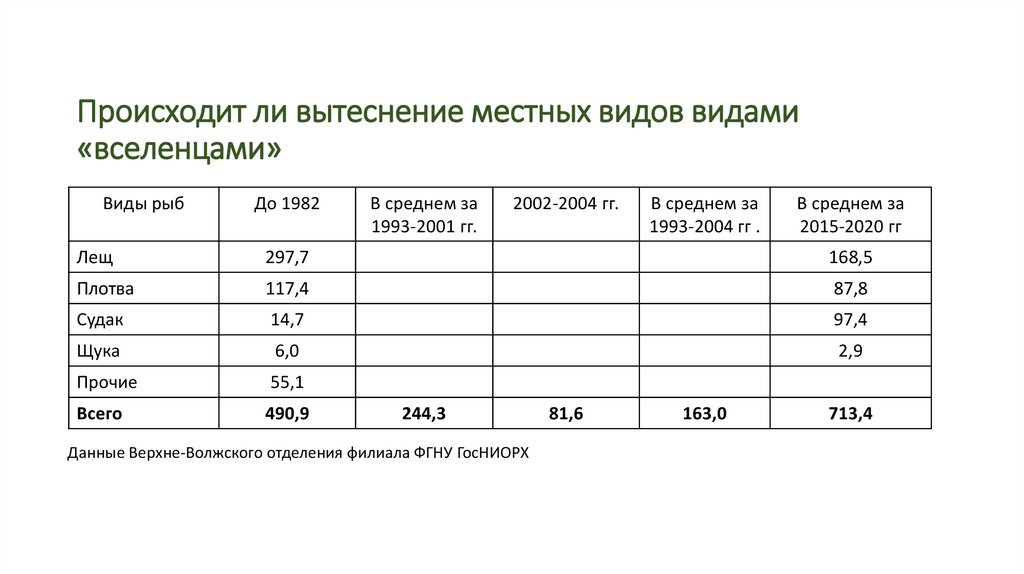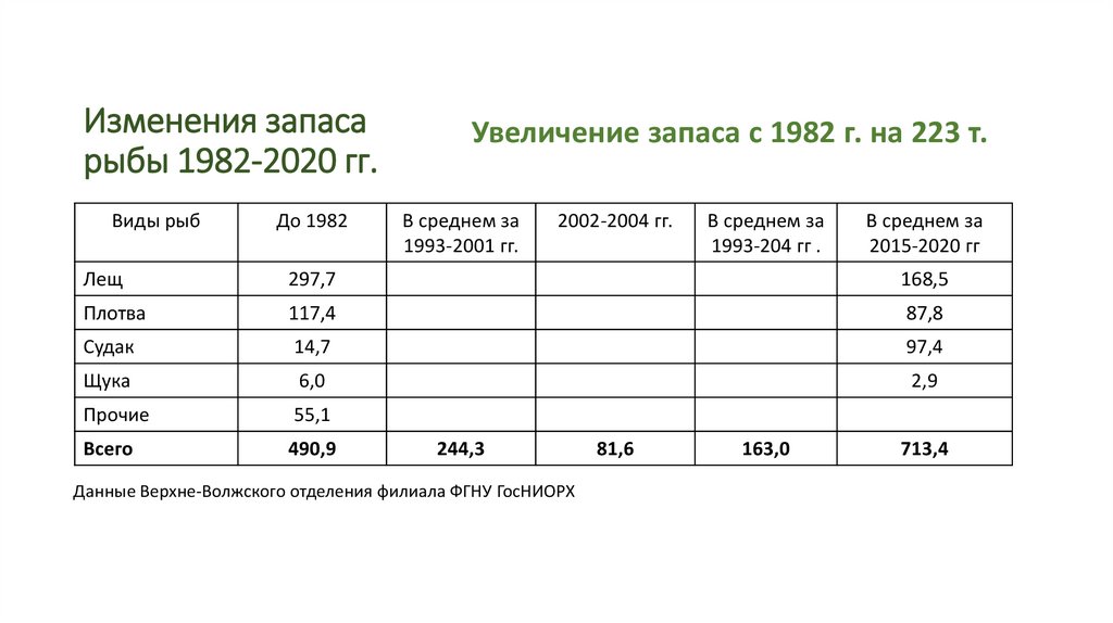 Данные Верхне-Волжского отделения филиала ФГНУ ГосНИОРХ