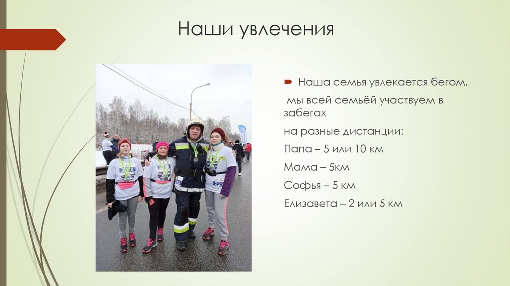 Наши увлеченияПомимо бега, мы участвуем в семейных