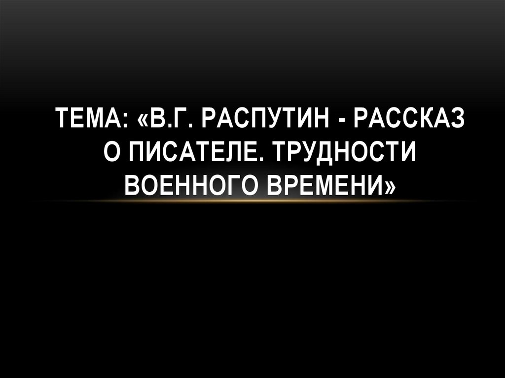 ТЕМА: «В.Г. РАСПУТИН - РАССКАЗО ПИСАТЕЛЕ. ТРУДНОСТИ