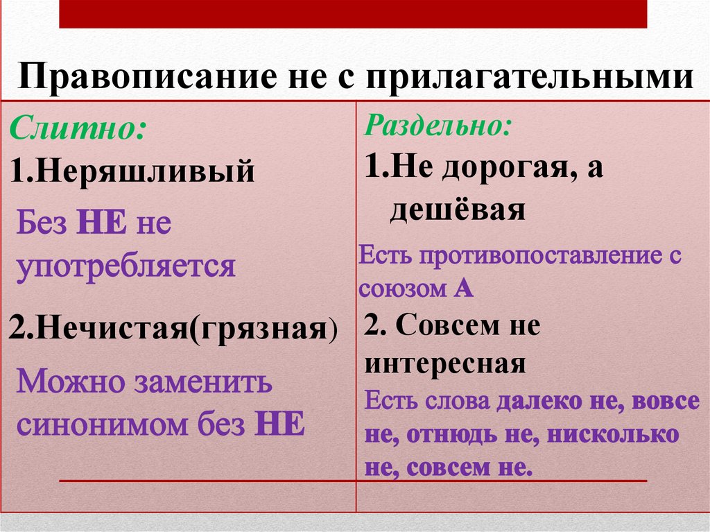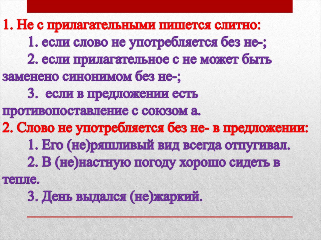 Правописание не с прилагательнымиСлитно: