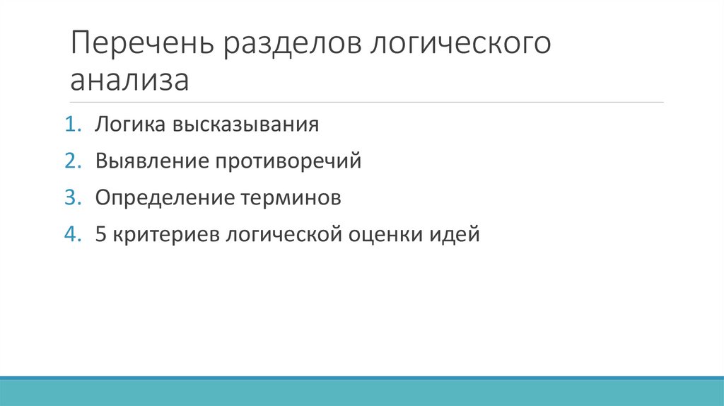 Перечень разделов логическогоанализа
