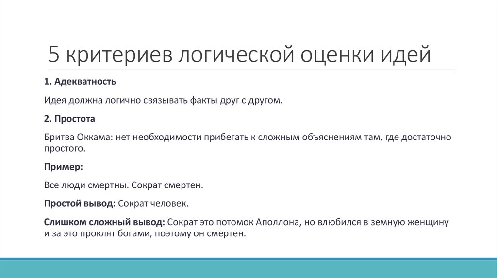 5 критериев логической оценки идей1. Адекватность