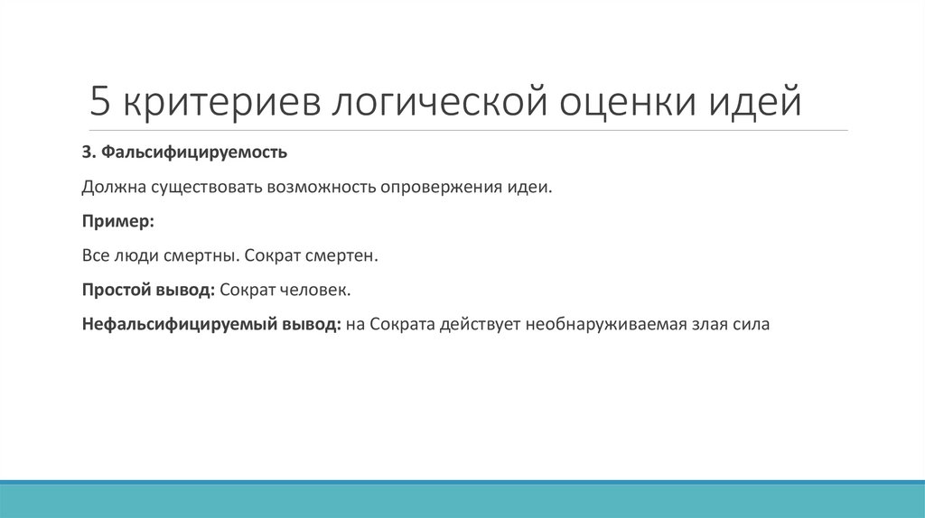 5 критериев логической оценки идей3. Фальсифицируемость