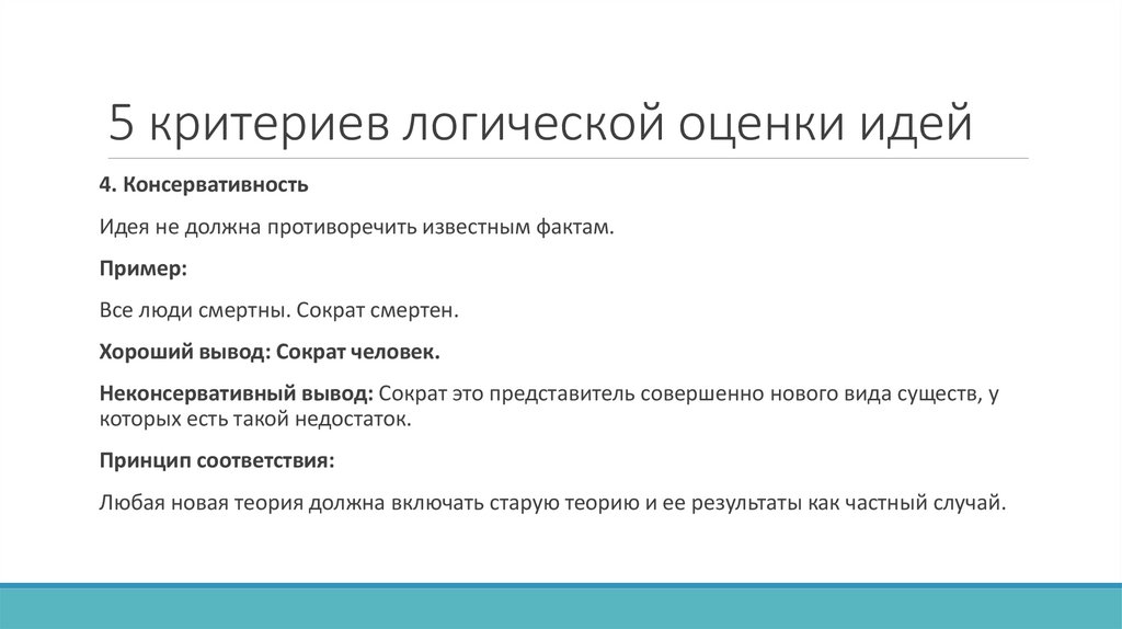 5 критериев логической оценки идей4. Консервативность