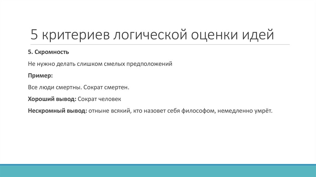 5 критериев логической оценки идей5. Скромность