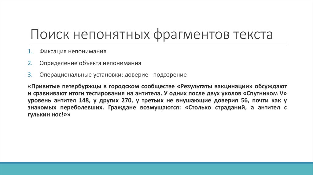 1. Поиск непонятных фрагментов текста, именно с ними происходит