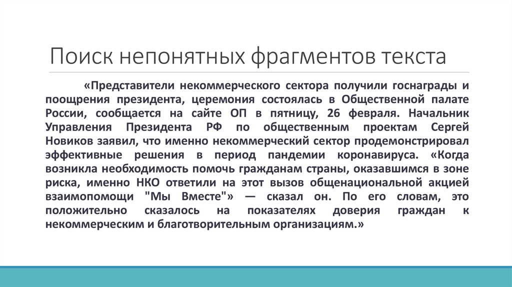 Поиск непонятных фрагментов текста«Представители некоммерческого сектора получили госнаграды и