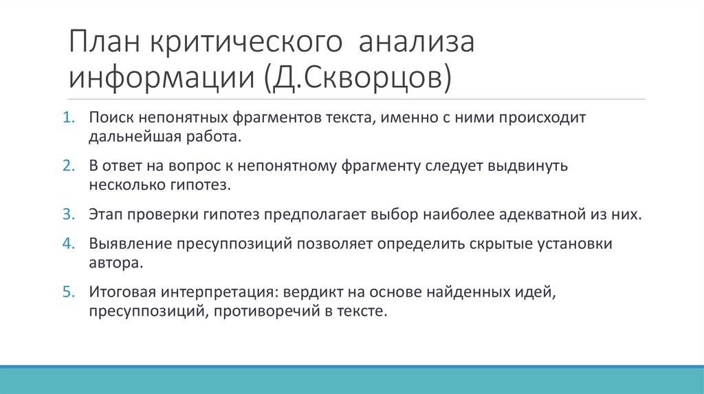 План критического анализаинформации (Д.Скворцов)