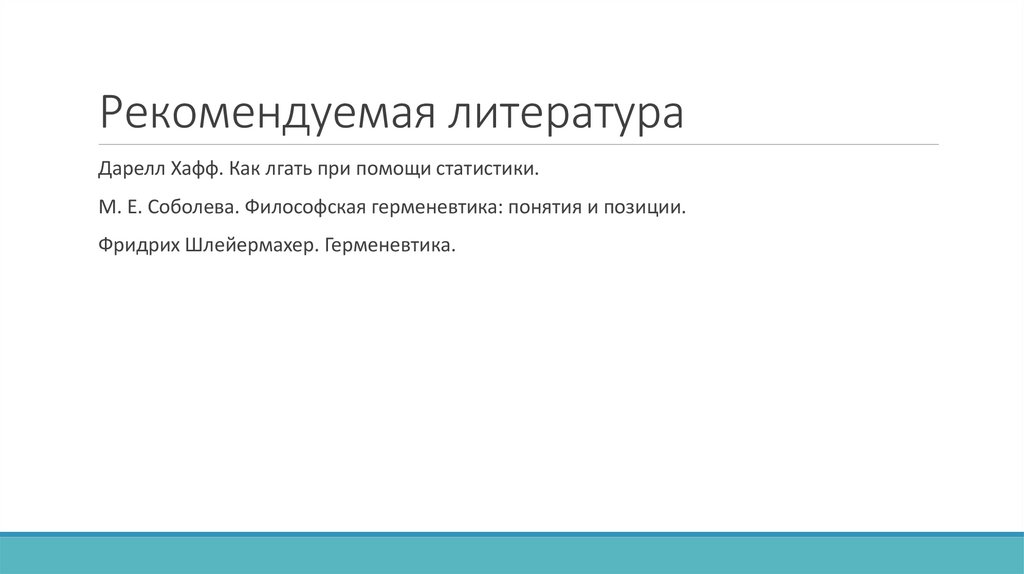 Рекомендуемая литератураДарелл Хафф. Как лгать при помощи статистики.