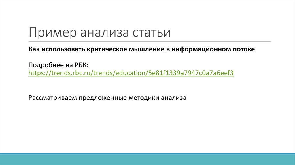 Пример анализа статьиКак использовать критическое мышление в информационном потоке