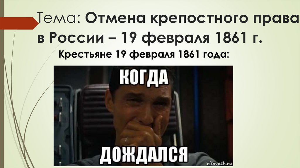 Тема: Отмена крепостного правав России – 19 февраля 1861 г.