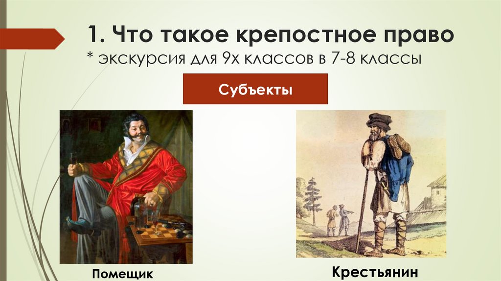 1. Что такое крепостное право* экскурсия для 9х классов в 7-8 классы