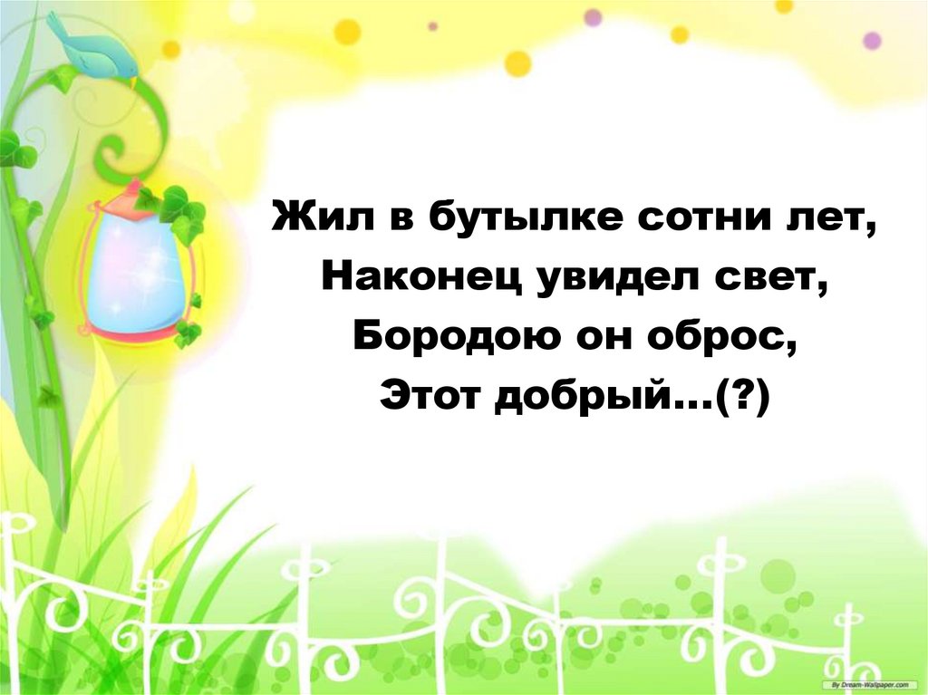 Жил в бутылке сотни лет,Наконец увидел свет,
