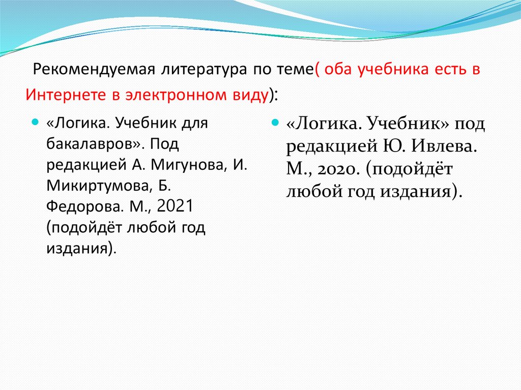 Рекомендуемая литература по теме( оба учебника есть вИнтернете в электронном виду):