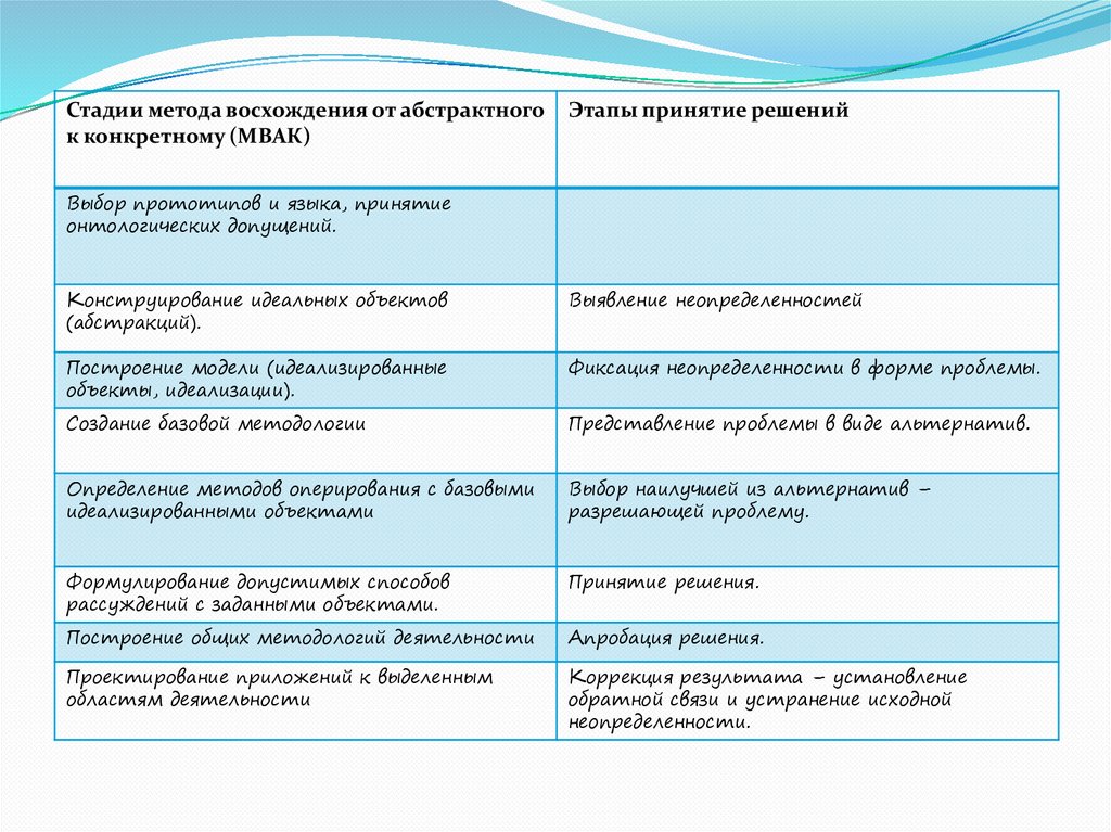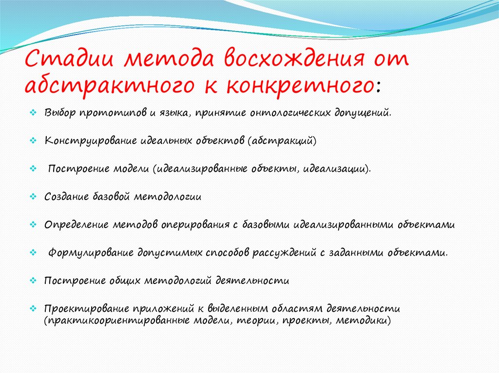 Стадии метода восхождения от абстрактногок конкретному (МВАК)