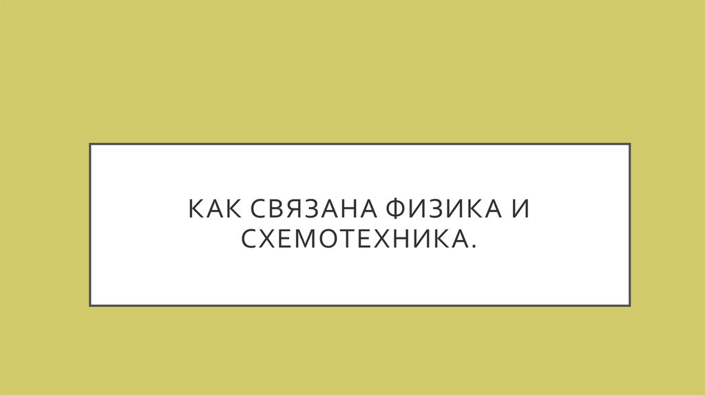КАК СВЯЗАНА ФИЗИКА ИСХЕМОТЕХНИКА.