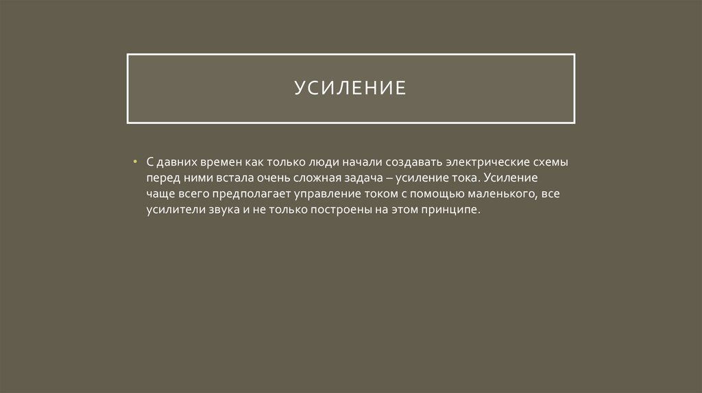 УСИЛЕНИЕ• С давних времен как только люди начали создавать электрические схемы