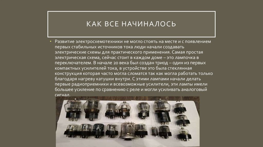 КАК ВСЕ НАЧИНАЛОСЬ• Развитие электросхемотехники не могло стоять на месте и с появлением