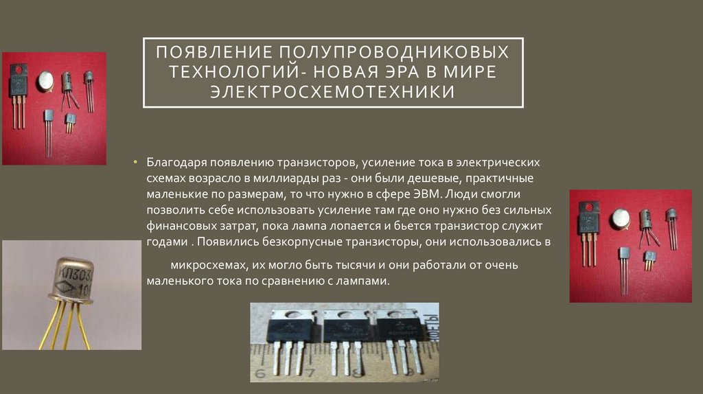 • Благодаря появлению транзисторов, усиление тока в электрических