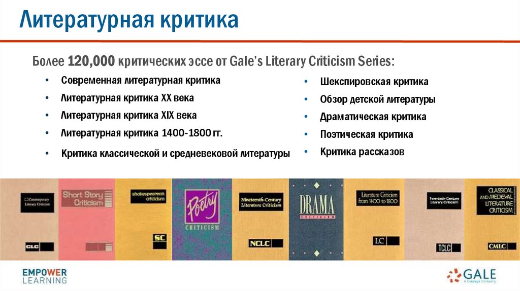 Литературная критикаБолее 120,000 критических эссе от Gale’s Literary Criticism Series: