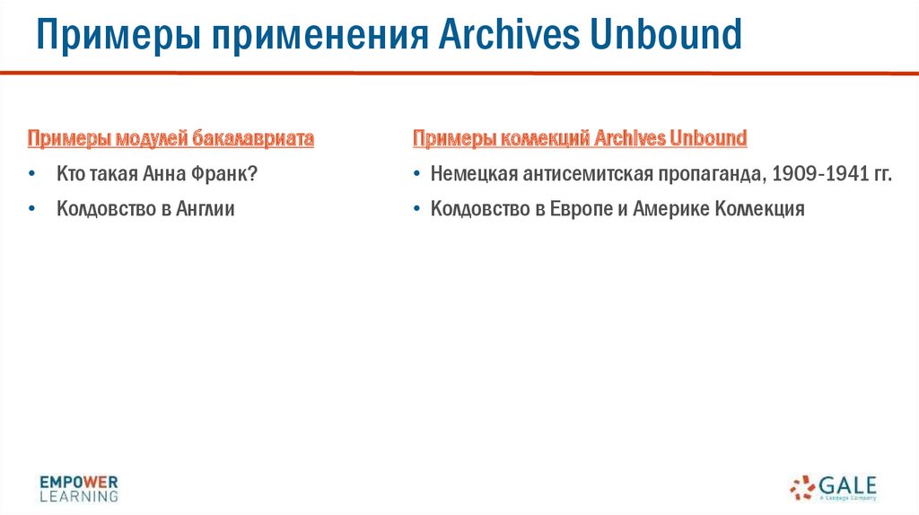 Примеры применения Archives UnboundПримеры модулей бакалавриата