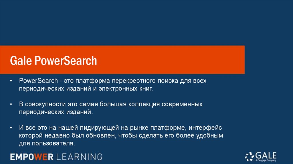 Gale PowerSearchPowerSearch - это платформа перекрестного поиска для всех