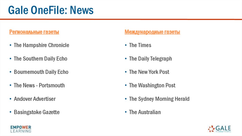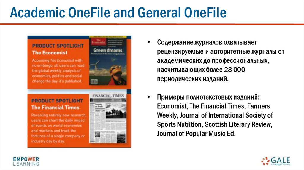 Academic OneFile and General OneFile• Содержание журналов охватывает