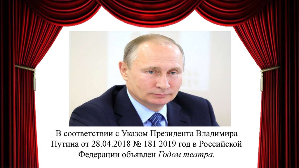 В соответствии с Указом Президента ВладимираПутина от 28.04.2018 № 181 2019 год в Российской