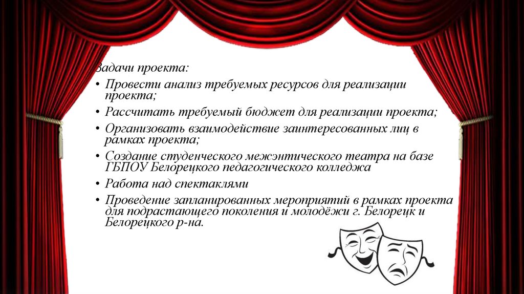 Задачи проекта:• Провести анализ требуемых ресурсов для реализации