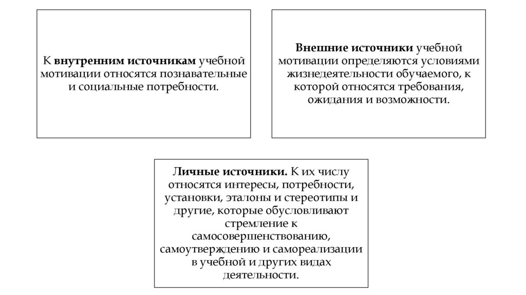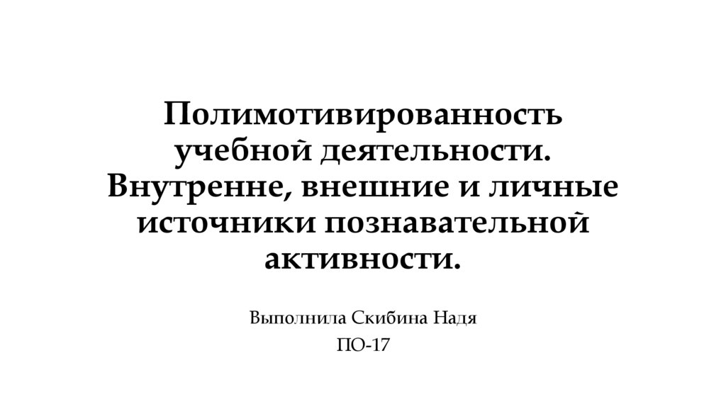 Полимотивированность учебной деятельности. Внутренне, внешние и личные источники познавательной активности