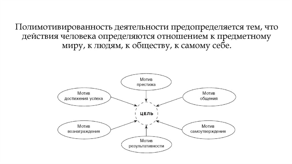 Полимотивированность деятельности предопределяется тем, чтодействия человека определяются отношением к предметному