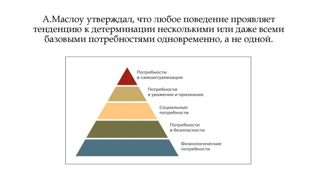 А.Маслоу утверждал, что любое поведение проявляеттенденцию к детерминации несколькими или даже всеми