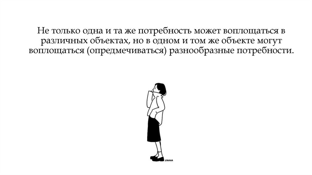 Не только одна и та же потребность может воплощаться вразличных объектах, но в одном и том же объекте могут
