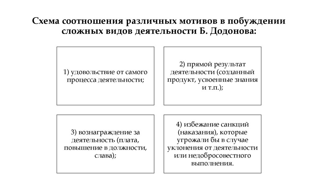 Схема соотношения различных мотивов в побуждениисложных видов деятельности Б. Додонова: