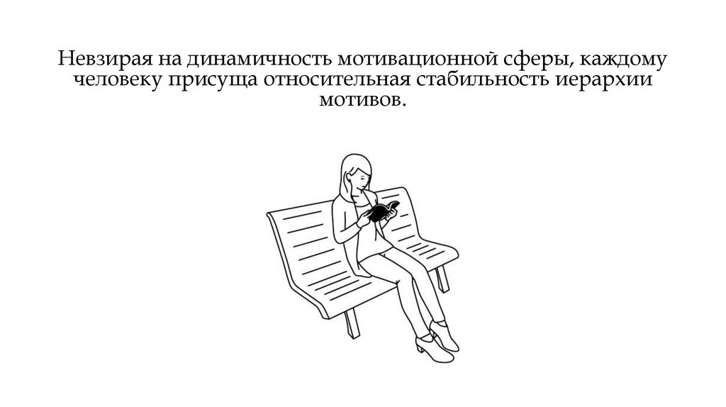 Невзирая на динамичность мотивационной сферы, каждомучеловеку присуща относительная стабильность иерархии