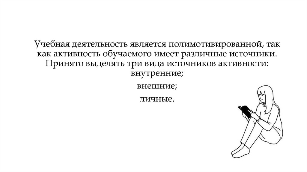 Учебная деятельность является полимотивированной, таккак активность обучаемого имеет различные источники.