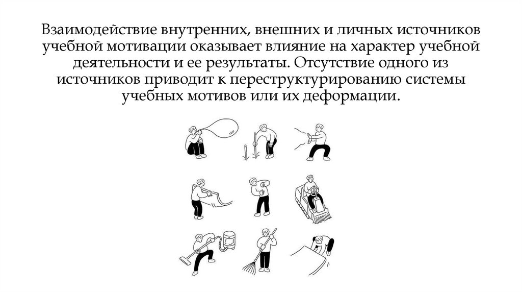 Взаимодействие внутренних, внешних и личных источниковучебной мотивации оказывает влияние на характер учебной
