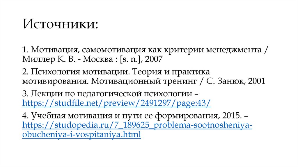 Источники:1. Мотивация, самомотивация как критерии менеджмента /