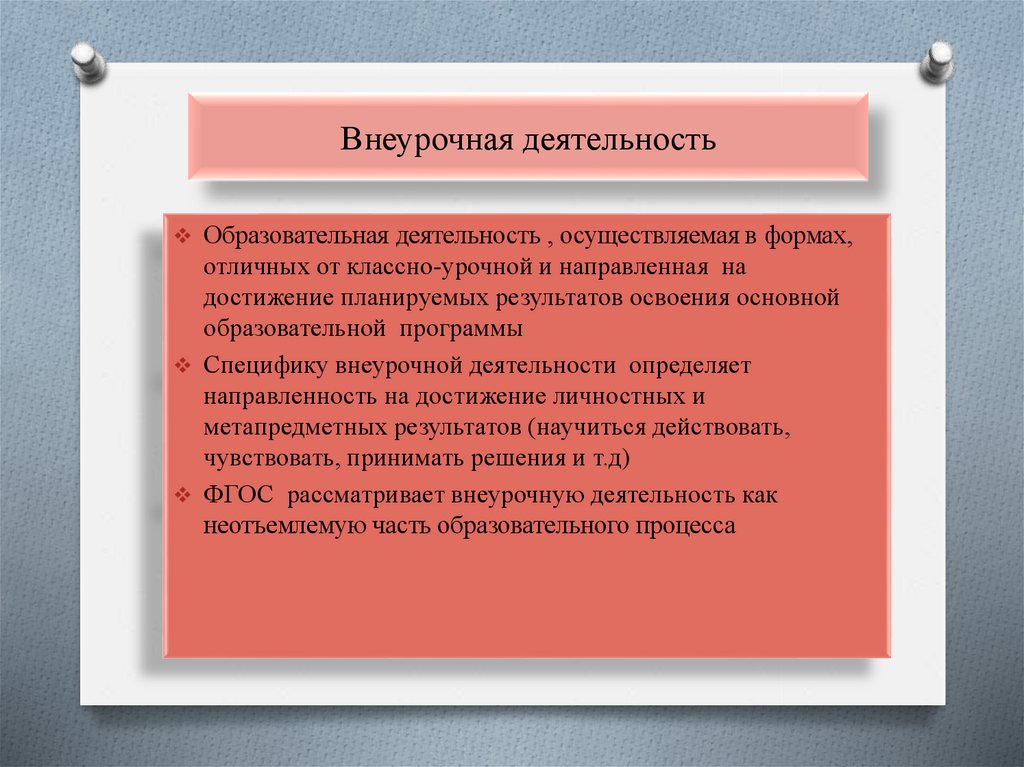 Внеурочная деятельностьОбразовательная деятельность , осуществляемая в формах,