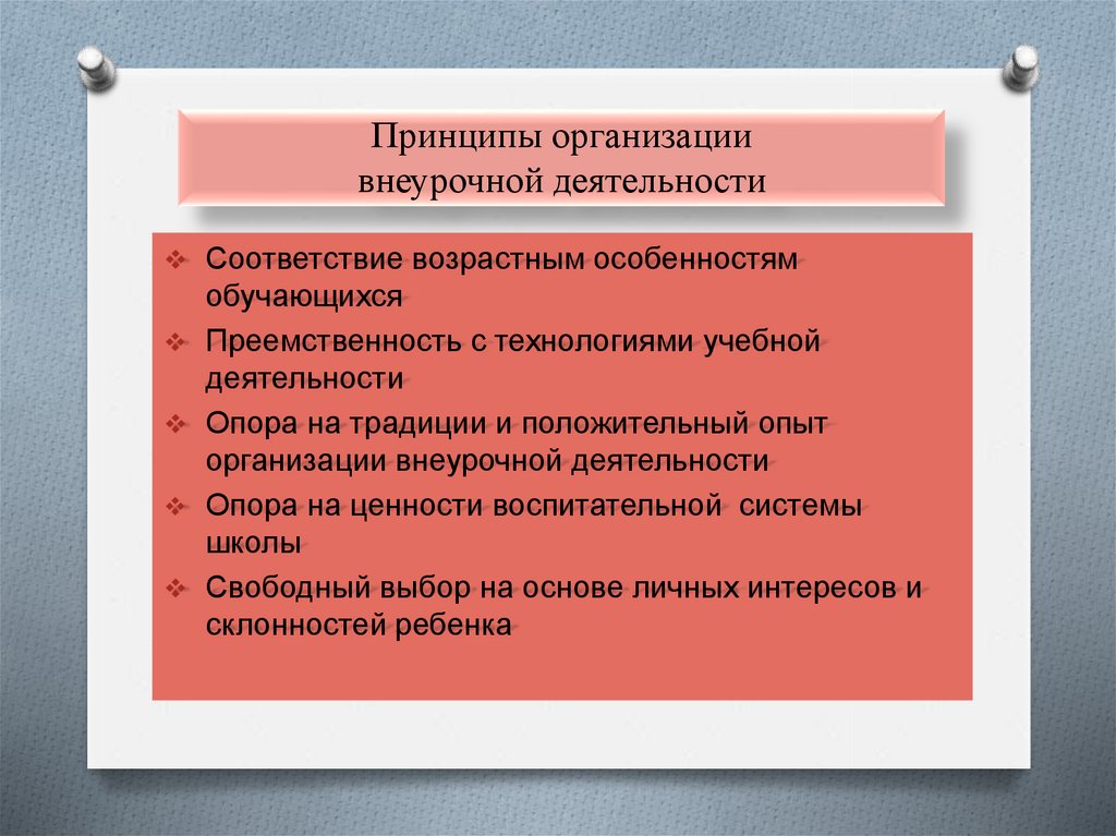 Принципы организациивнеурочной деятельности
