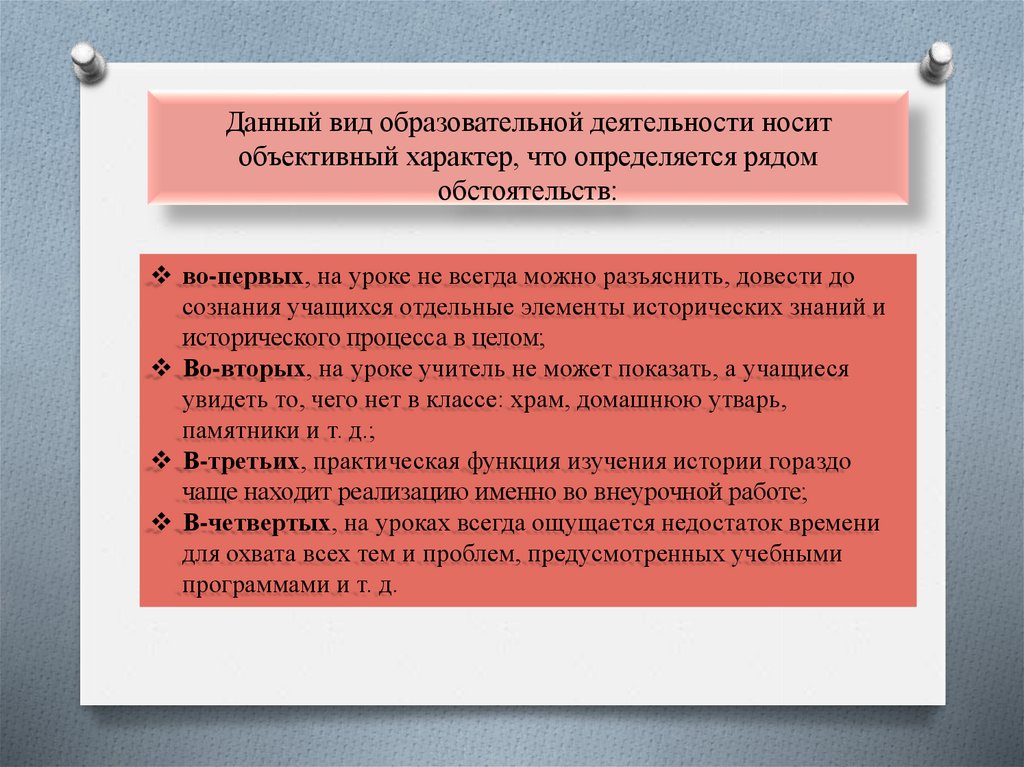 Данный вид образовательной деятельности носитобъективный характер, что определяется рядом