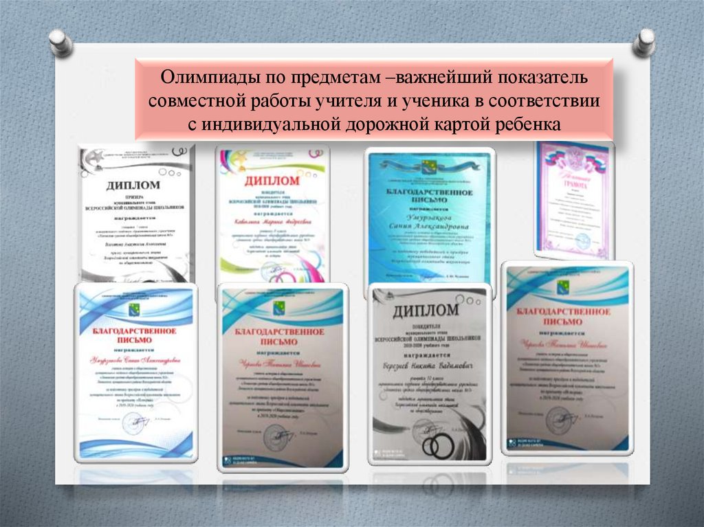 Олимпиады по предметам –важнейший показательсовместной работы учителя и ученика в соответствии