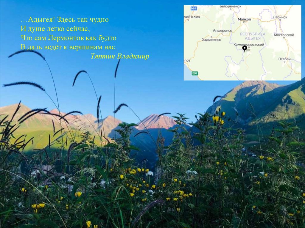 …Адыгея! Здесь так чудноИ душе легко сейчас,