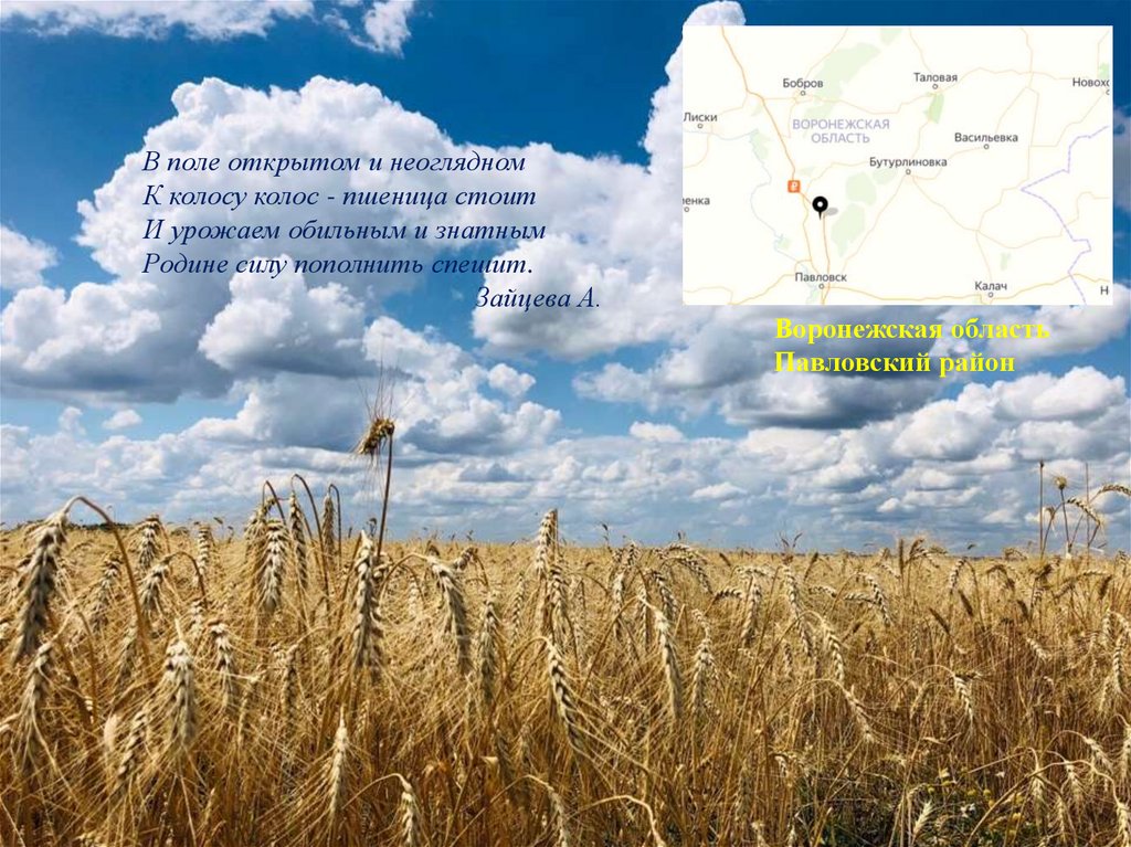 В поле открытом и неоглядномК колосу колос - пшеница стоит