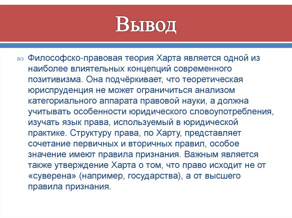 Философско-правовая теория Харта является одной изнаиболее влиятельных концепций современного