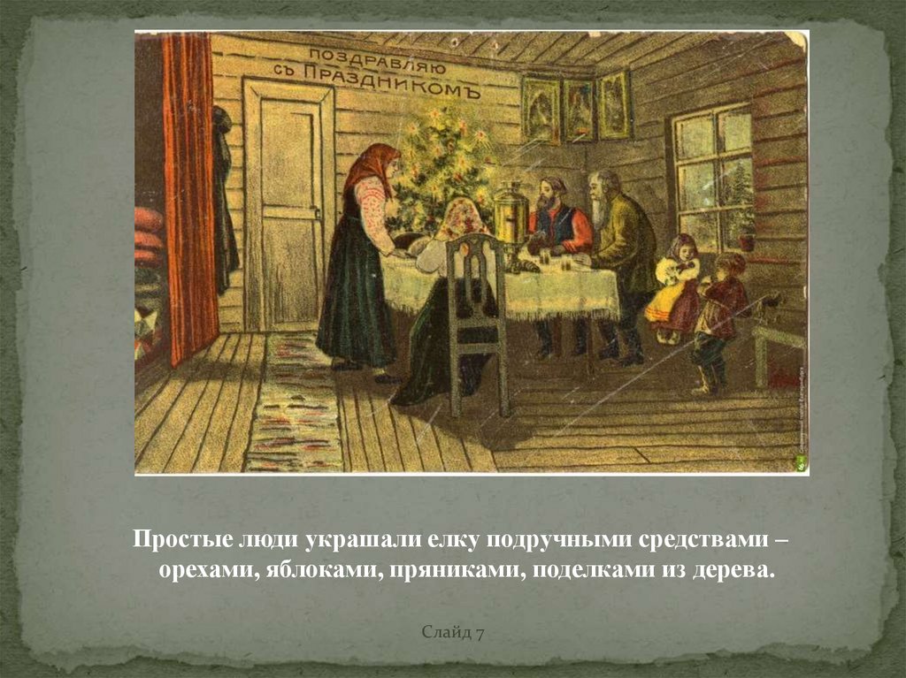 Простые люди украшали елку подручными средствами –орехами, яблоками, пряниками, поделками из дерева.