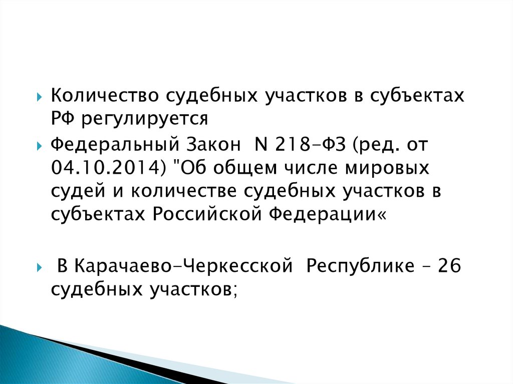 Количество судебных участков в субъектахРФ регулируется