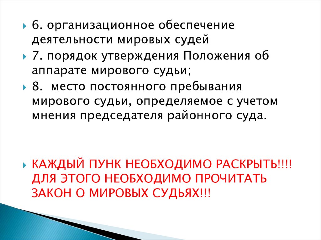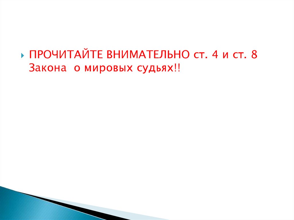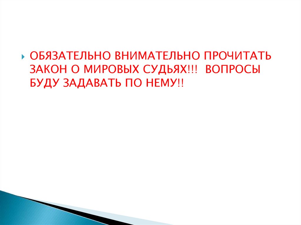 ОБЯЗАТЕЛЬНО ВНИМАТЕЛЬНО ПРОЧИТАТЬЗАКОН О МИРОВЫХ СУДЬЯХ!!! ВОПРОСЫ
