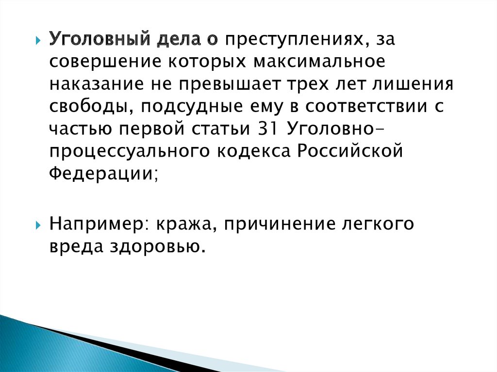 Например: кража, причинение легкого