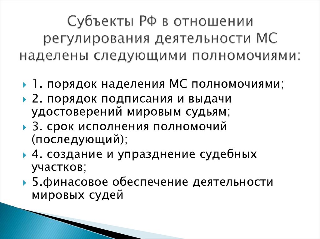 1. Мировой судья назначается (избирается) на должность насрок, установленный законом соответствующего субъекта